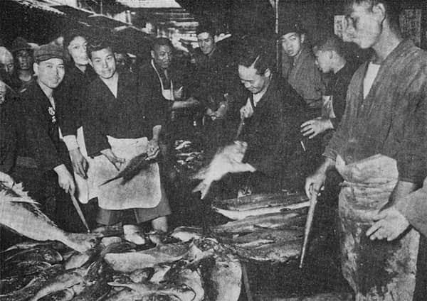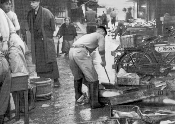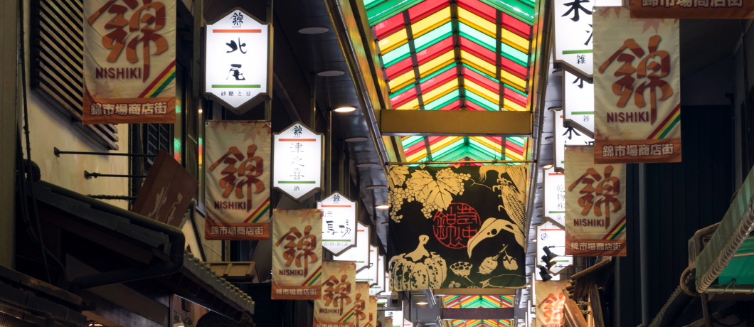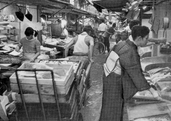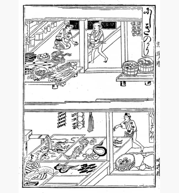 上の店(かみのたな)、錦の店、六条の店の三店魚問屋(さんたなうおとんや)の一つが錦市場でした。