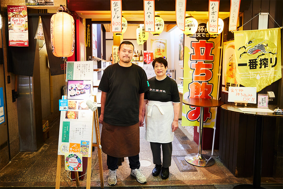 元は細工野菜で有名な八百屋さんでした。いつしか店の奥で料理を食べさせるようになり、いまのような昼は定食、夜は居酒屋のスタイルになりました。生湯葉とほうれん草和え、水菜と揚げの炊いたん、蕪蒸しなど、おばんざいと言われる京都の家庭料理が手頃な価格で味わえます。