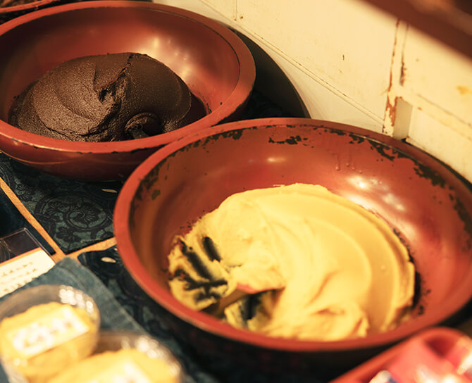 以前はお惣菜のお店だったころの名残で、京都の食には欠かせない白味噌をいまでも扱っています。しかも、江戸時代から続く老舗「石野味噌」。常連さんへの地方発送が多いとか。