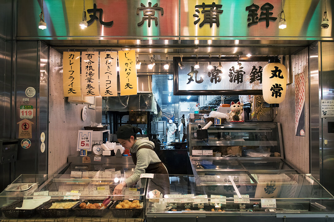 すり身はいまでも頑なに石臼を使います。ステンレスでは材料がふちにつかないが石臼だとふちにつくので、何度も手を入れてかき混ぜるからすり身がなじむ。そこが良いそうです。じつは、かつて錦市場に数軒あったという練り物と揚げ物の製造販売店も、いまはこの店だけです。おでん種や本格蒲鉾だけでなく、創作揚げ物まで揃います。