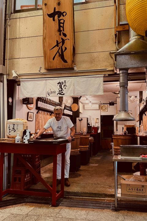 2016年錦市場の漬物屋のヌカ樽がびっしり並んでいた所が突然立ち飲み屋になりました。当初は純米酒の澤屋まつもととビールと漬物だけの店でしたが、立ち飲み屋は磯辺の浅瀬だという考えのもとにおかしなスタッフがそこら中から集まってきて今ではお客様も全国から黒帯的な酒飲みがやって来る酒場になっています。独自の進化を続けてきた生き物達が寄り添って飲むそんな市場な店です。