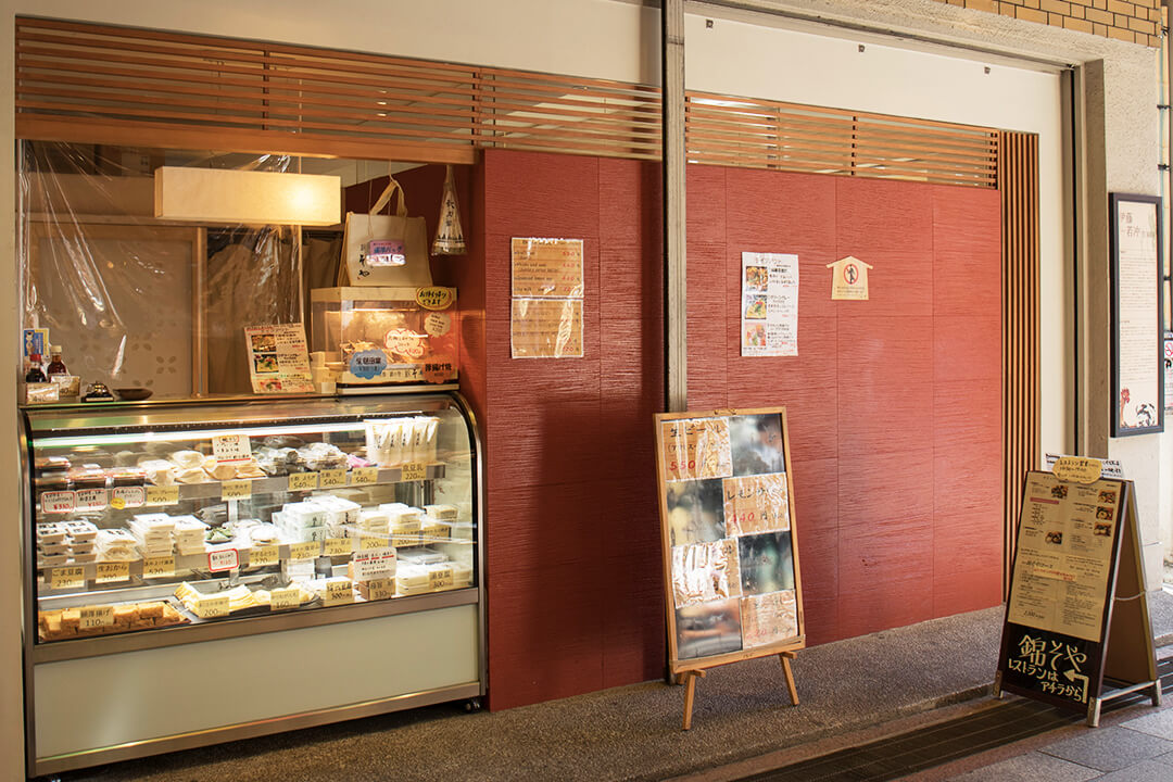 錦市場の西入りのたつ若冲のモニュメントの側にあるお店。豆腐の販売と豆腐料理のレストランを営んでおります。レストランはランチのみのセットメニューになります。豆腐ハンバーグ、おからコロッケ、麻婆豆腐豆乳鍋をメインに季節に合わせたメニューや一品とともにヘルシーなランチをお楽しみいただけます。販売では豆腐・京あげ・絹厚揚げ・豆乳・生麩・ひろうす、おから等も取り揃えております。