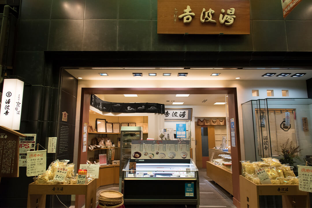 店の入り口に立つ札。そこには錦市場に店を構えたのは江戶時代後期(寛政2年/1790年)とあります。以来、湯葉ひと筋。ここで湯葉を作り続けているのは、錦の地下水があってのことだと言う、錦市場で唯一のゆば製造販売店。現在の店主は創業から9代目。いまも頑なに、この店伝統の手業を守っています。