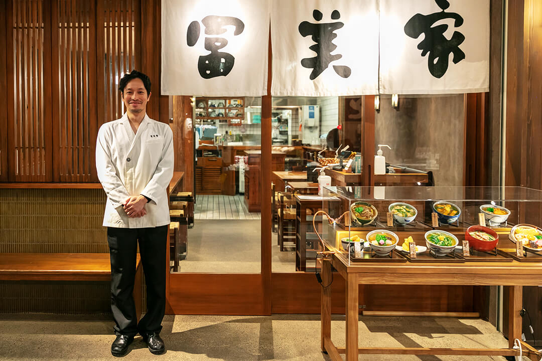 昼どきにいつも列ができている、70年以上続くうどん屋さん。長年地元のお客さまに支持されてきたのは、「材料と手間を惜しまない」姿勢で、良い材料をふんだんに使って美味しいものを作り続けてきたから。おだしが主役という京都のうどんには良いおだしが欠かせません。天然の材料を使い、毎日職人が丁寧におだしをとっています。