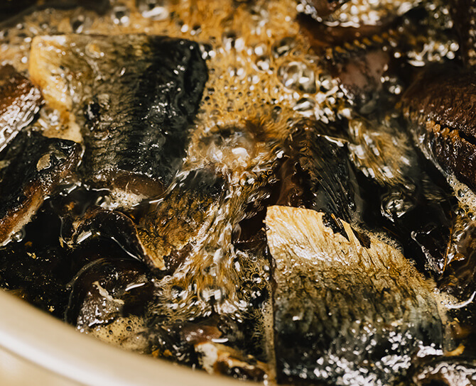 「昔食べたものがやたら食べたくなる」というお客さまがよく来られると、店主は語ります。店頭には棒鱈やにしんなど京都の食文化を代表するものが並びます。お客さまとの会話を大切にする店主曰く「好きなものを買って自分の器に自分流に並べて欲しい」「たくさん買いすぎないで欲しい」と。