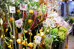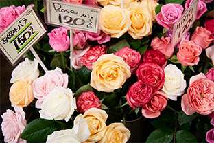 日常の中でもっと気軽にお花を楽しんでほしい気持ちから、店内には国内・外のトップクラスのお花、レアな品種や茶花、枝物などがリーズナブルなプライスで多数並びお客様ご自身で手に取って選んで頂けます。