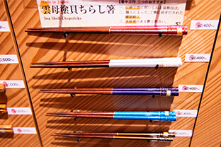 いったい何本あるのでしょう。ここは、お箸と箸置きの専門店。京料理のイメージからでしょうか、お箸には京都らしさを感じます。一般的にお箸の材料はアスナロヒノキが大半ですが、ここは竹の産地の長岡を控える京都だけに、竹製のお箸と箸置き、竹の爪楊枝と爪楊枝BOXのセットなどが充実しています。