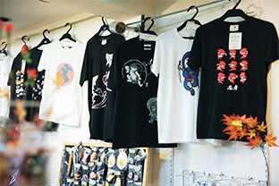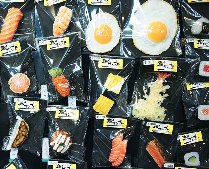 衣類、手拭い、ハンカチ、特殊加工のTシャツ、珍しいところではモンペまである用品雑貨の「よろず屋」さんと、オーナーはおっしゃいます。そして、京都ではここだけという食品サンプルが買えるお店でもあります。プリンやフルーツパフェなど、良くできた仕上がりに思わず感嘆の声が上がります。