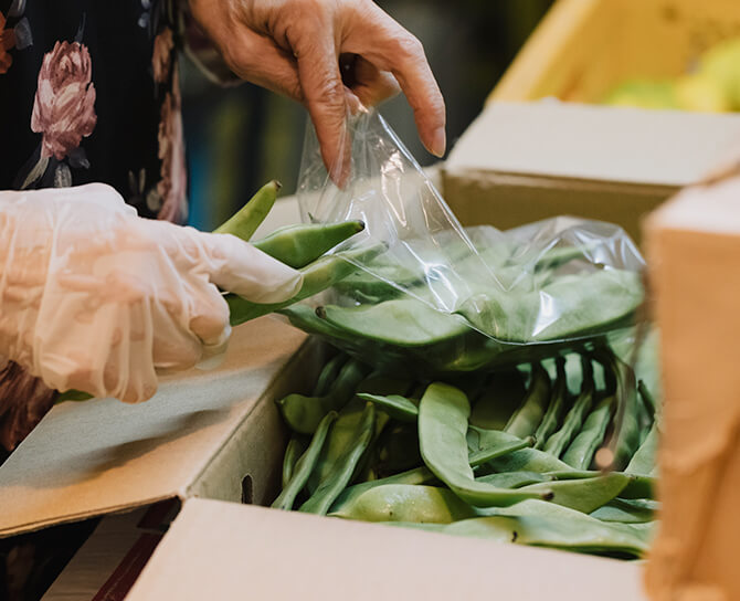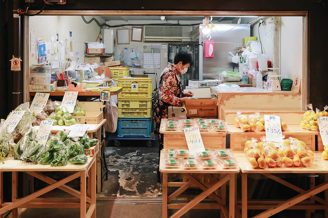 錦市場に店をかまえてはいますが、京都産にこだわってはいないと店主は⾔います。料亭に卸すような商売ではなく⼩売だけですから、近郊のもので新しくて値段が安いものが良いと考えています。卸売市場に通い良いと思える⽣産者を選び、その農家の商品を仕⼊れるようにしています。