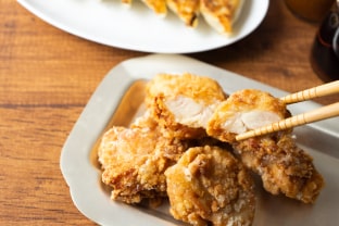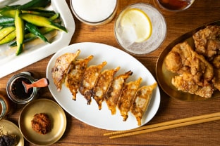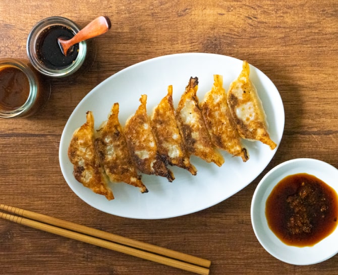 餃子を、なににつけて食べるかは自由。定番の酢醤油や酢ゴショウももちろん旨い。