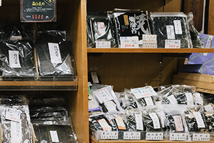 寿司、割烹、有名料亭やホテルなどを得意先に持つ、海苔・カツオ・昆布・椎茸など乾物類の専門店。京都の出し文化にふれて欲しいと願うご主人は、料理に合わせた出汁の種類や選び方、店頭の商品の一番美味しい食べ方などなんでも聞いてほしいと言います。削りたてのかつお節の、なんとも良い匂いが店先に漂っています。