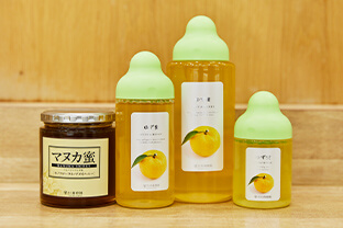 豊かな “自然のめぐみ”はちみつ。熊本県の自社養蜂場で養蜂を行い、さらには日本各地で実際に蜜を集めています。純粋の完熟はちみつ、みずみずしい果汁とはちみつをブレンドした果汁蜜、ローヤルゼリーやプロポリス、近年健康作用が注目されているニュージーランド産のマヌカ蜜など。幅広い年齢層に愛されるはちみつ製品をラインナップしています。