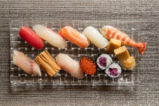 京都の宮津や舞鶴など日本海から直送される鮮魚を中心に、日本全国から仕入れるネタ。ランチは握りはもちろん、鯛茶漬けや海鮮ちらし寿司など気軽にお越しいただけます。夜はおまかせ握りコース。赤酢と白酢を使い分けるこだわりの握りをご堪能ください。